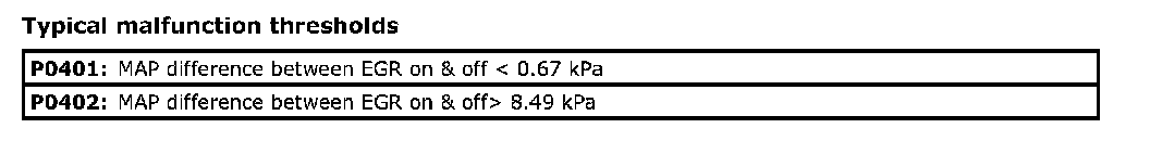 Refer to DTC P0401 / P0402: Exhaust Gas Recirculation Flow Insufficient / Excessive Detected. P0401 P0402