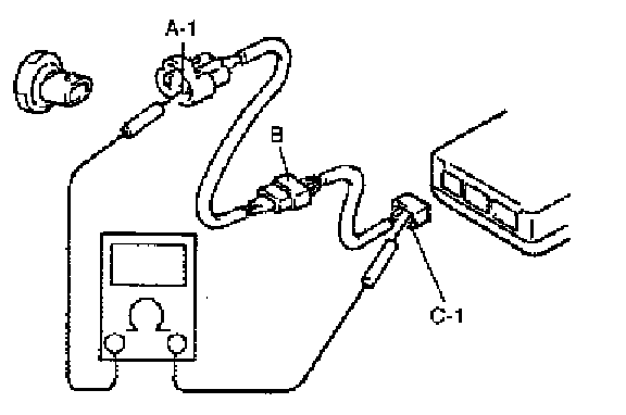 If no continuity is indicated, that means that the circuit is open between terminals A-1 and B- 1. If continuity is indicated, there is an open circuit between terminals B-1 and C-1 or an abnormality in connector-B.