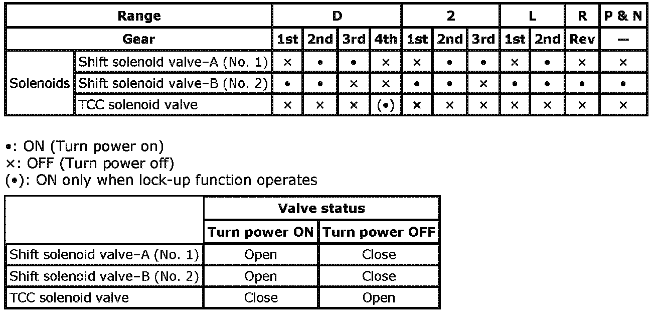 Operation of Shift Solenoid Valves and TCC Solenoid Valve