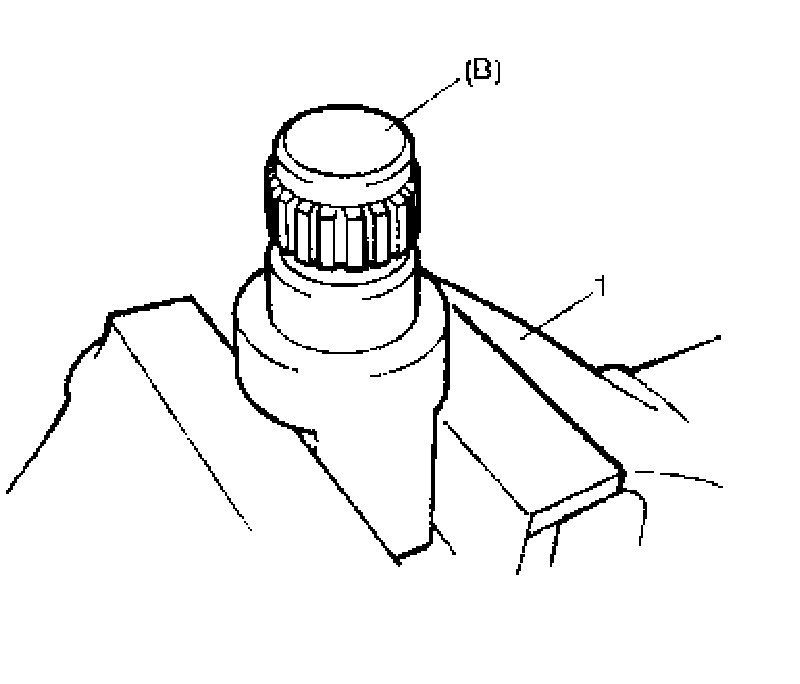 NOTE: When staking lock nut, point a suitable staking tool (1) toward axis center shaft (3) and stake lock nut (2) securely as shown in figure. (Poor staking may cause abnormal noise.)