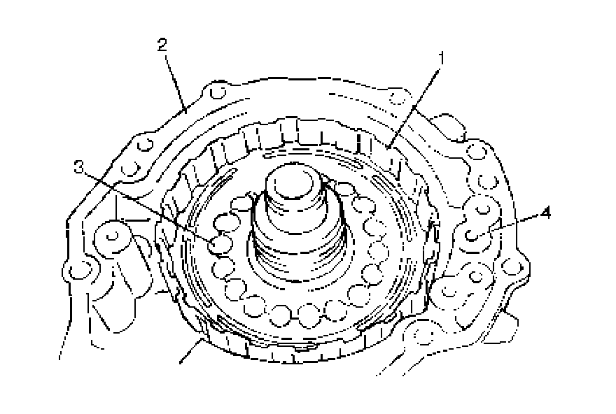 7. Remove forward clutch piston subassembly (3) with O-rings installed through oil hole (4) compressed air (400 - 800 kPa, 4 - 8 kgf/cm2, 57 - 113 psi).
