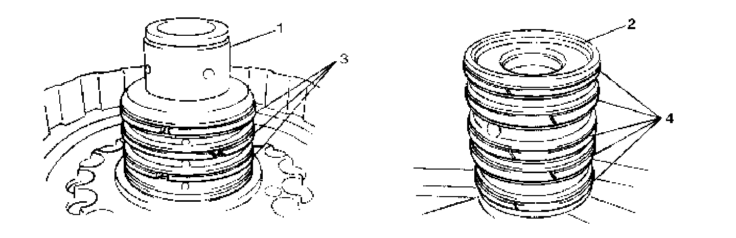 1. Coat new oil seal rings (3, 4) with A/T fluid.