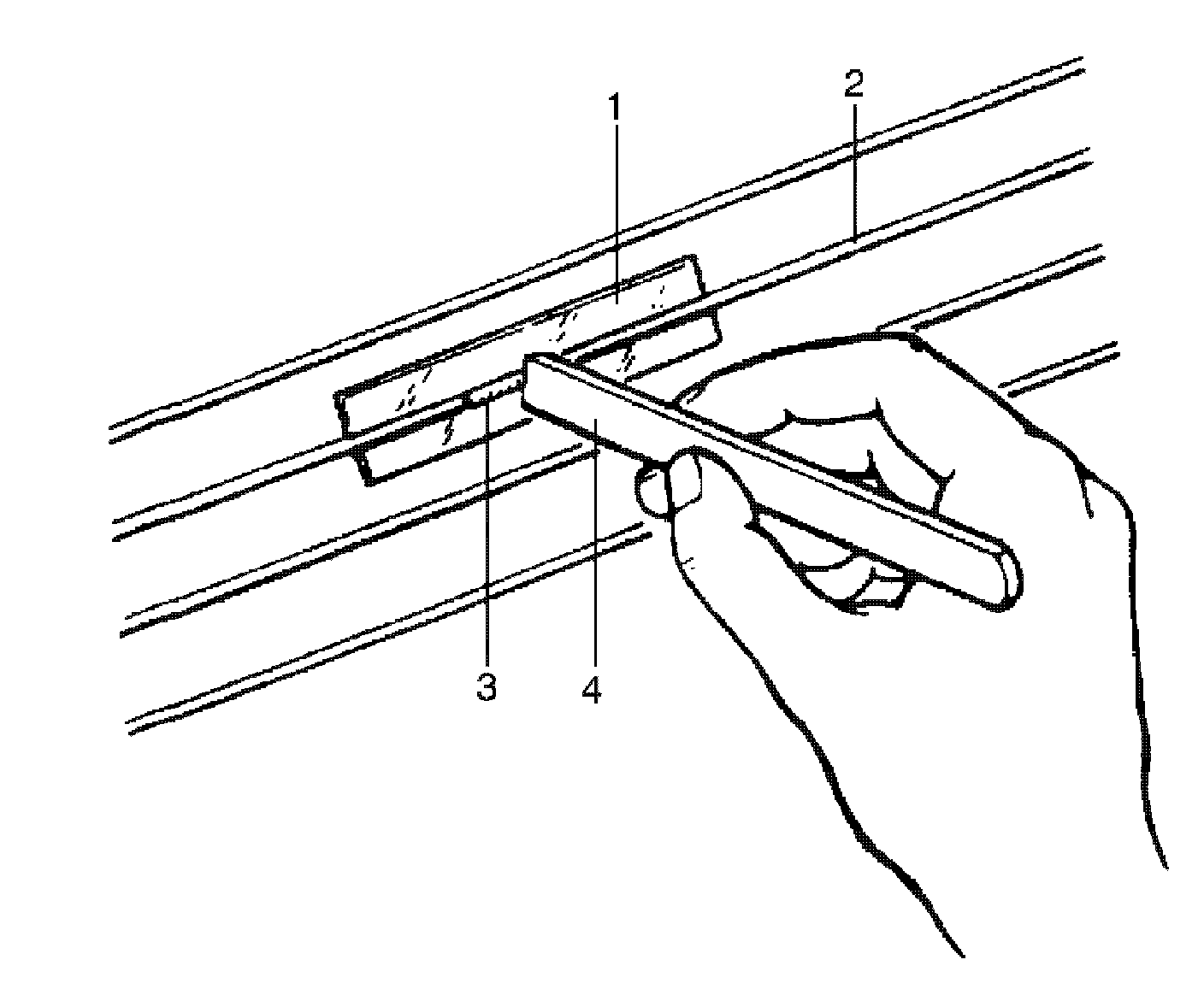 3. Apply commercially-available repair agent (3) with a fine-tip brush (4).