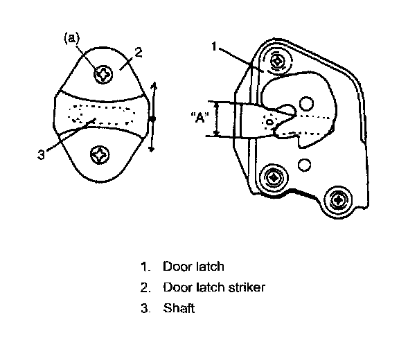 Door latch striker screw (a): 13 N.m (1)3 kg-m, 9.5 lb-ft)