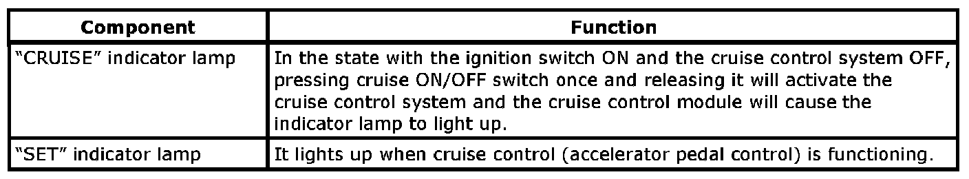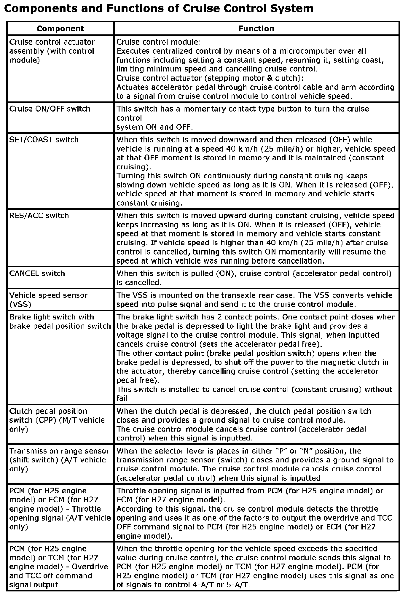COMPONENTS AND FUNCTIONS OF CRUISE CONTROL SYSTEM