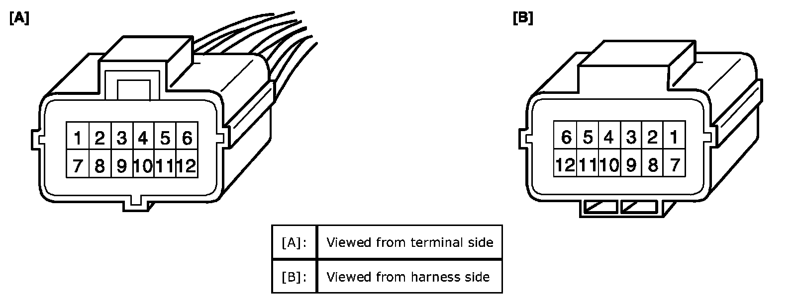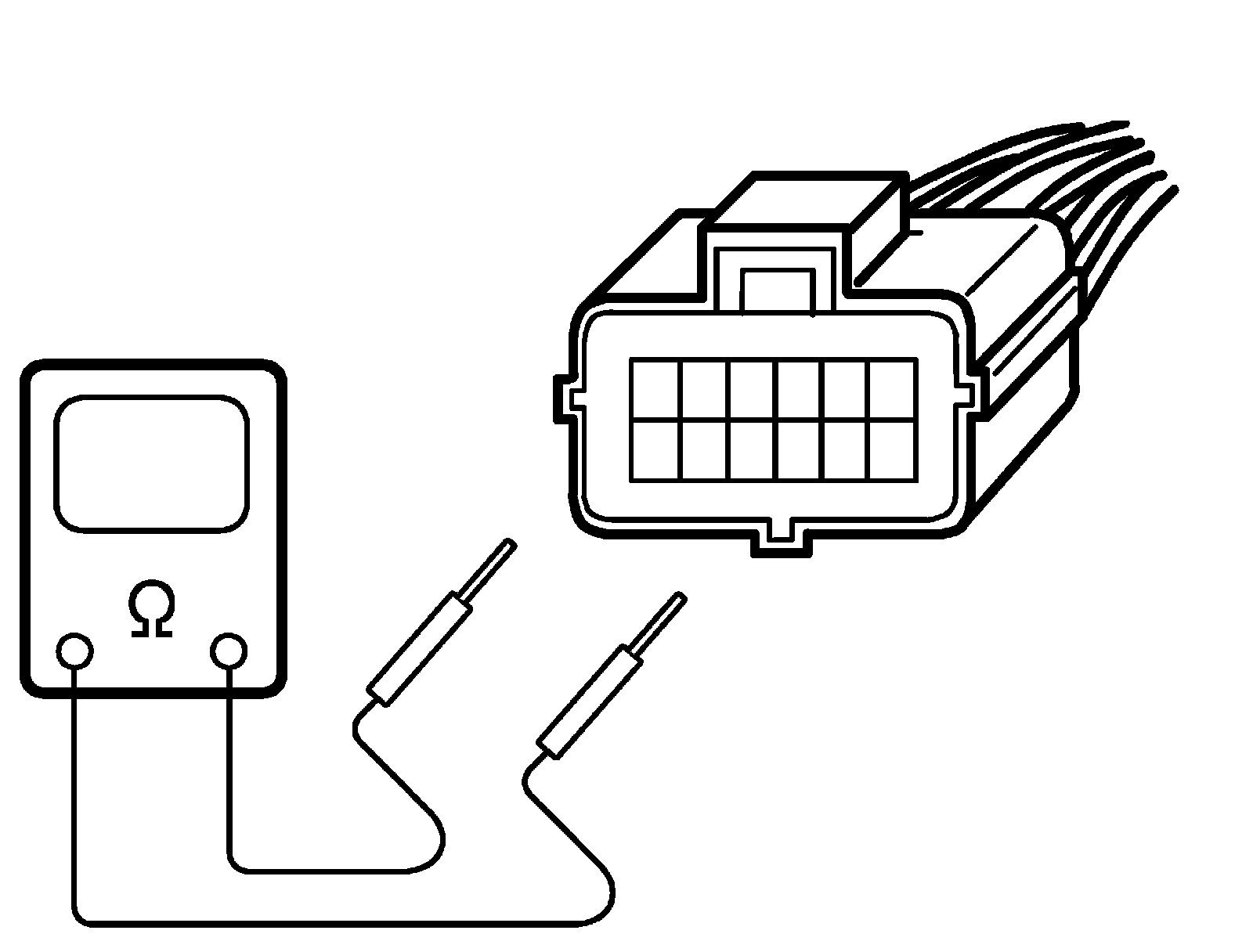 2. Check resistance between each pair of terminals of disconnected connectors as shown in the following table.
