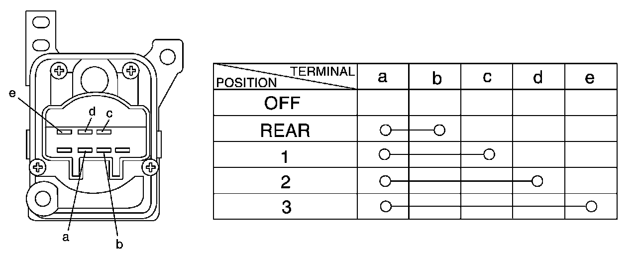 Check rear A/C main switch for each terminal-to-terminal continuity.