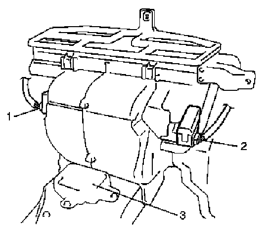 15. Remove air joint duct (3) from heater and cooling unit.