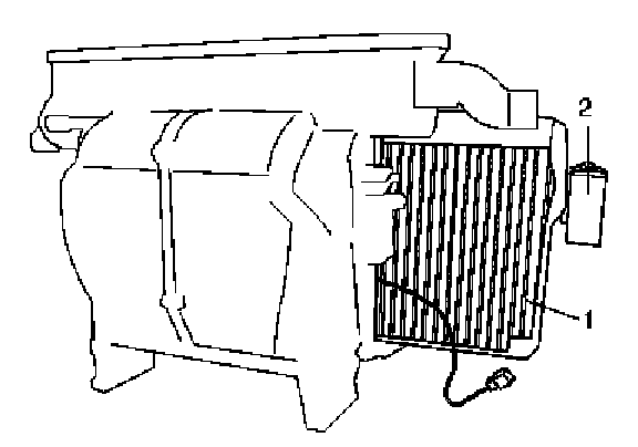 16. Remove evaporator (1) with expansion valve (2), and then heater and cooling unit.