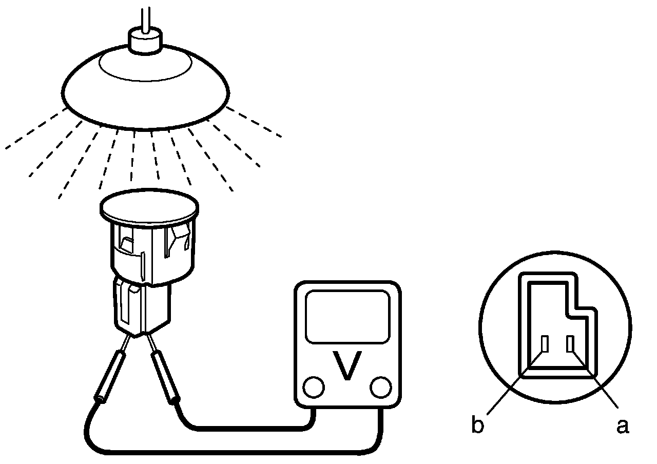 3. Measure the voltage between the terminals with the (+) probe on the terminal "a" and the (-) probe on the terminal "b".