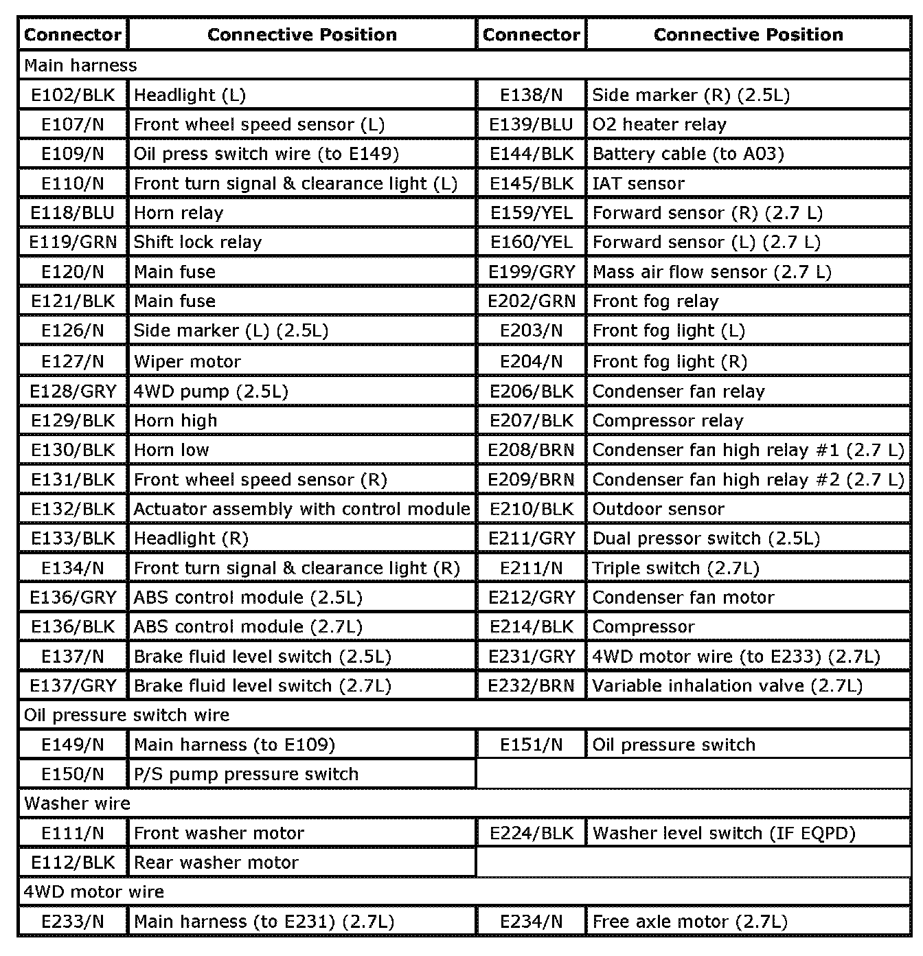 E: Main Harness, Oil Pressure Switch Wire And Washer Wire Index: