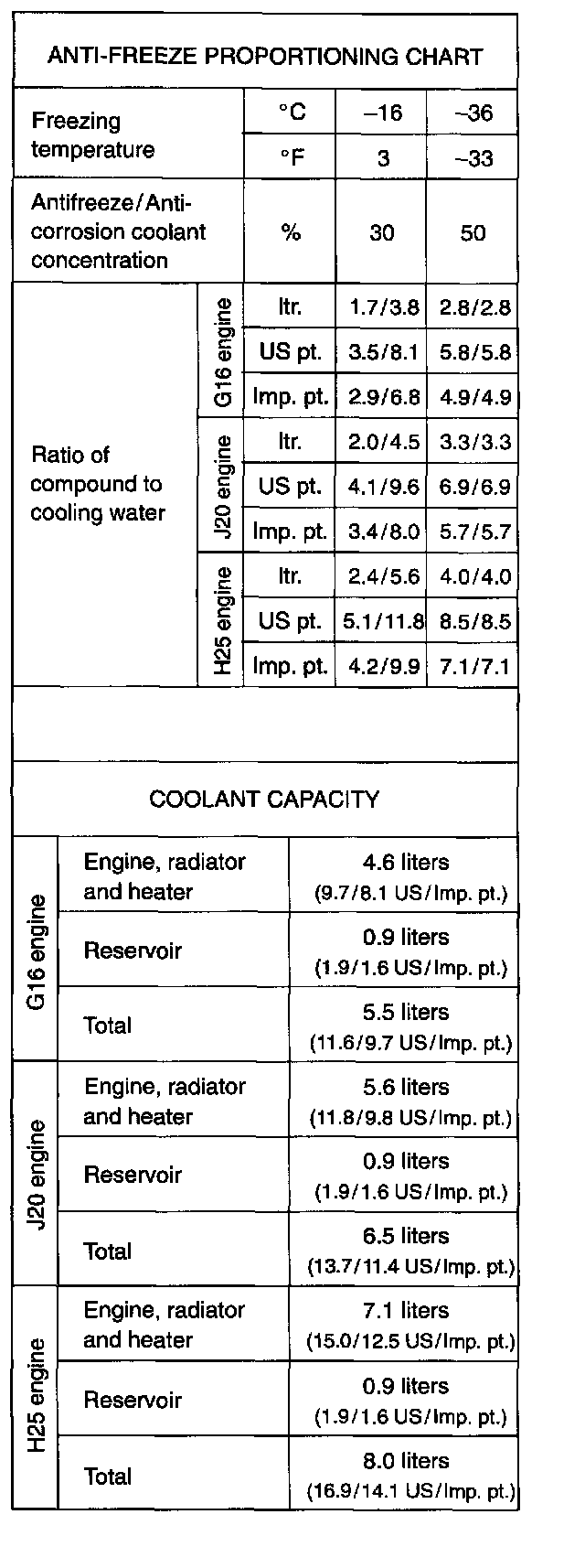 ^ Even in a market where no freezing temperature is anticipated, mixture of 70% water and 30% ethylene glycol antifreeze (Antifreeze/Anticorrosion coolant) should be used for the purpose of corrosion protection and lubrication.