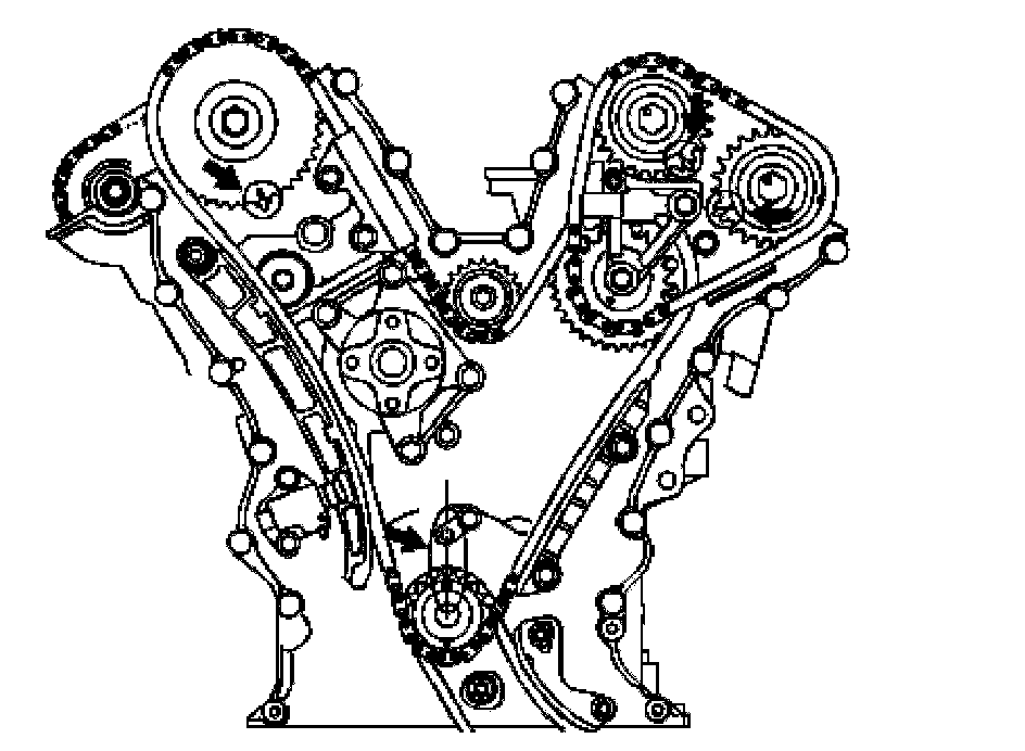 ^ For reinstallation of timing chain, align 8 timing marks as shown in figure by turning crankshaft.