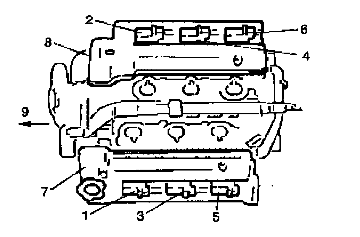 - The 6 cylinders of the engine are identified by numbers; No.1 (1), No.2 (2), No.3 (3), No.4 (4), No.5 (5) and No.6 (6) as counted from crankshaft pulley side (9) to flywheel side.