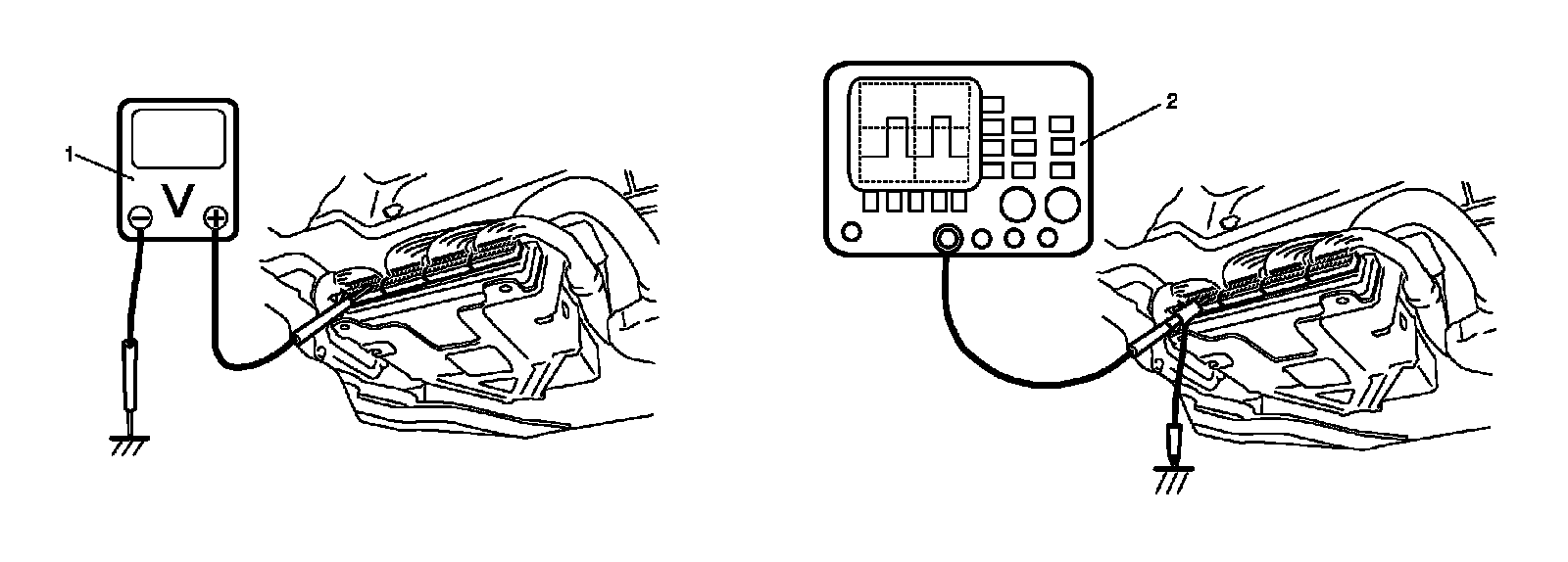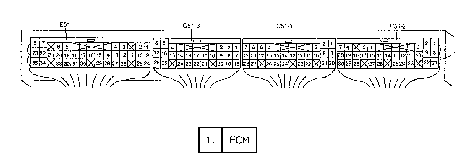 CAUTION: Never touch terminals of ECM itself or connect voltmeter or ohmmeter (2).