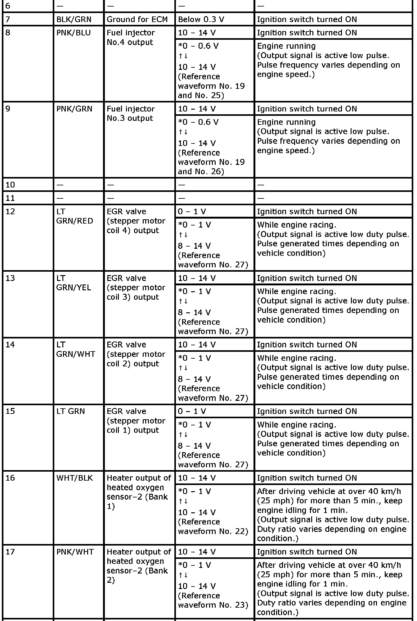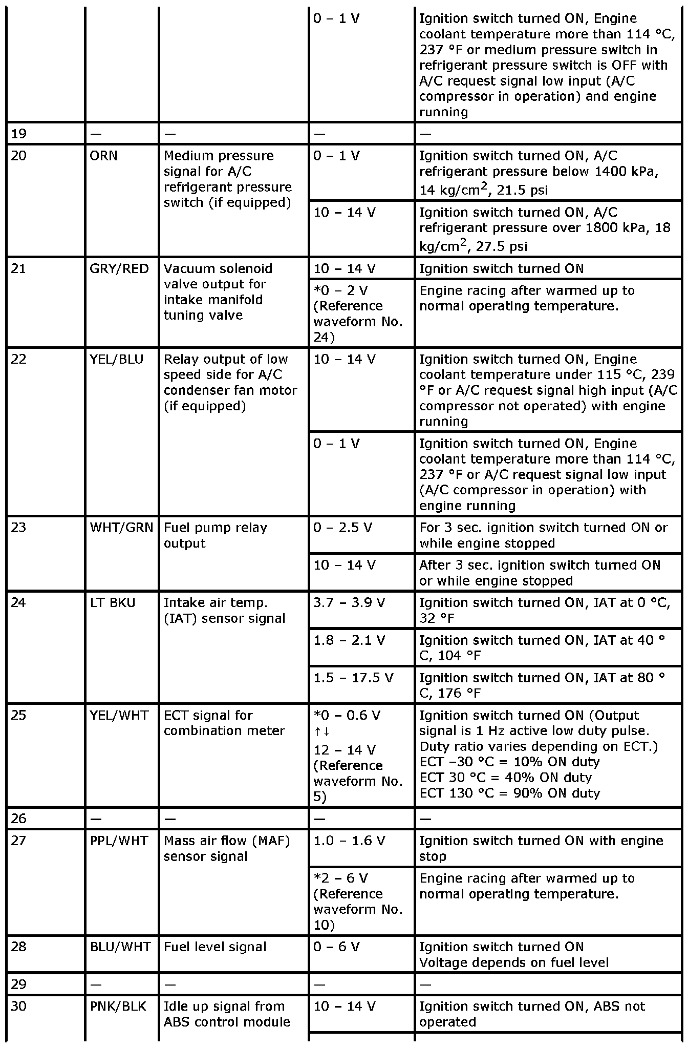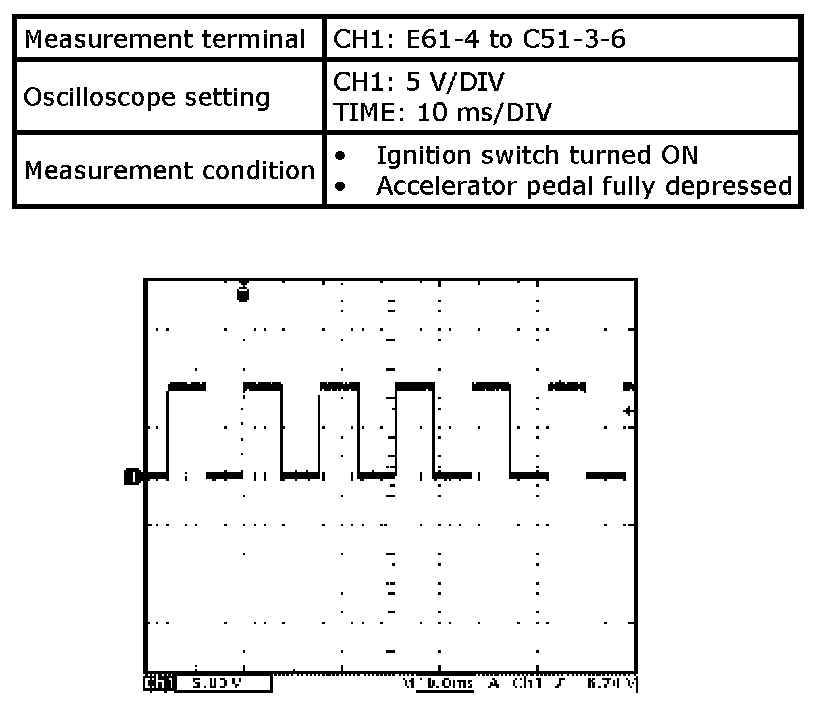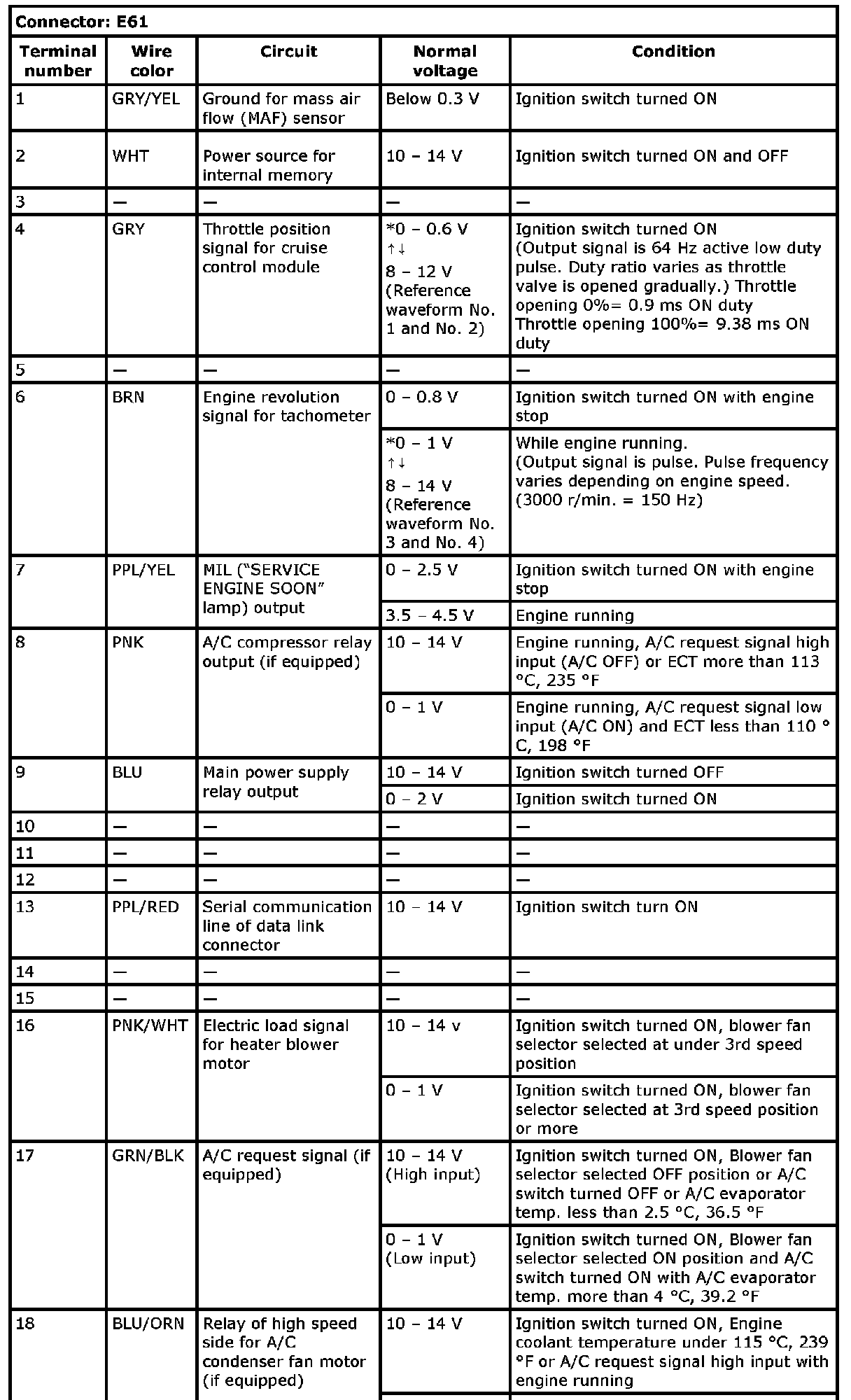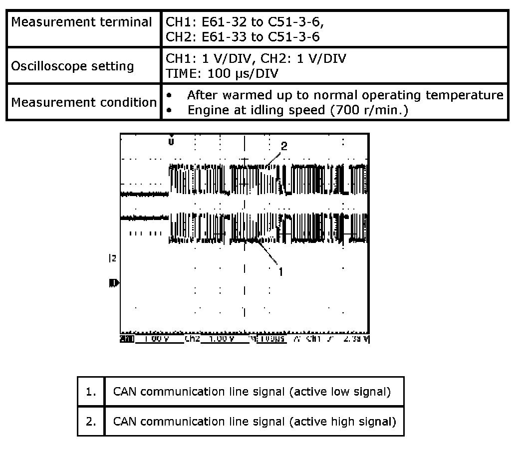 - As each terminal voltage is affected by the battery voltage, confirm that it is 11 V or more when ignition switch is turned ON.