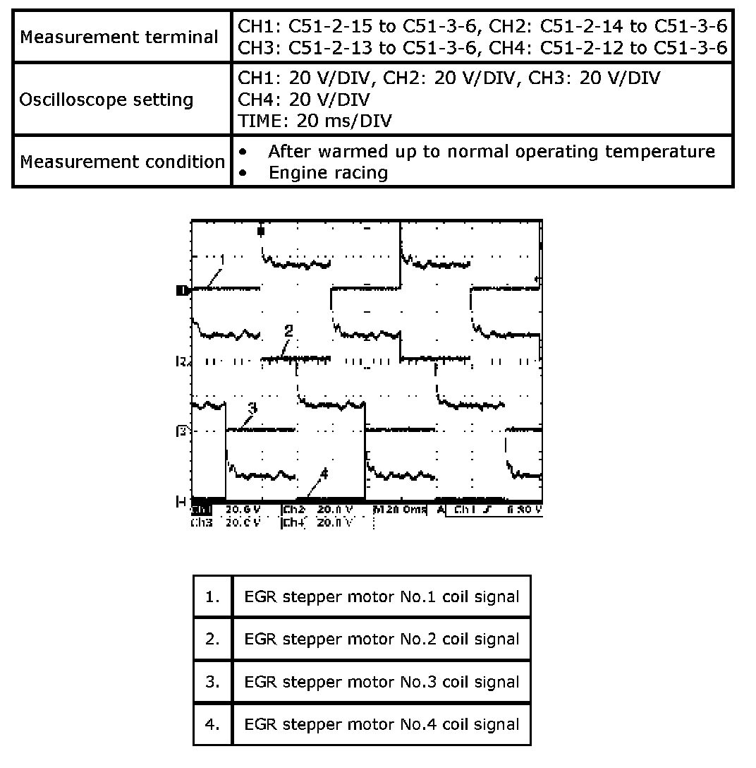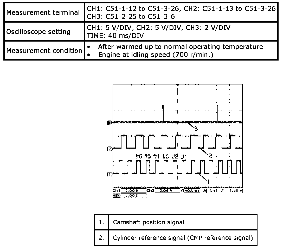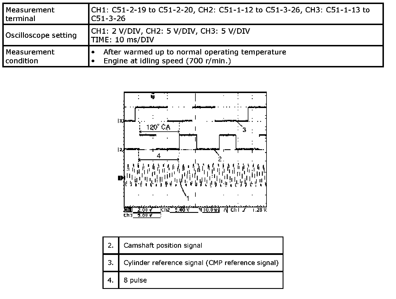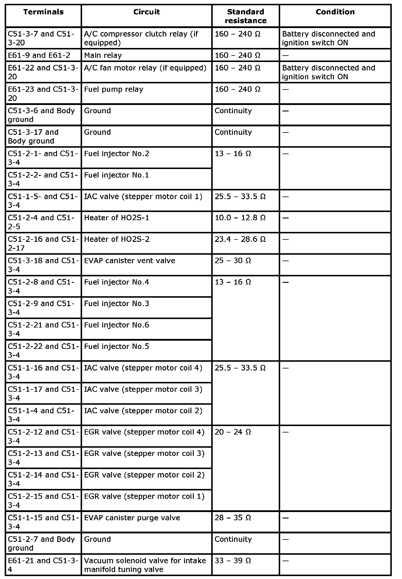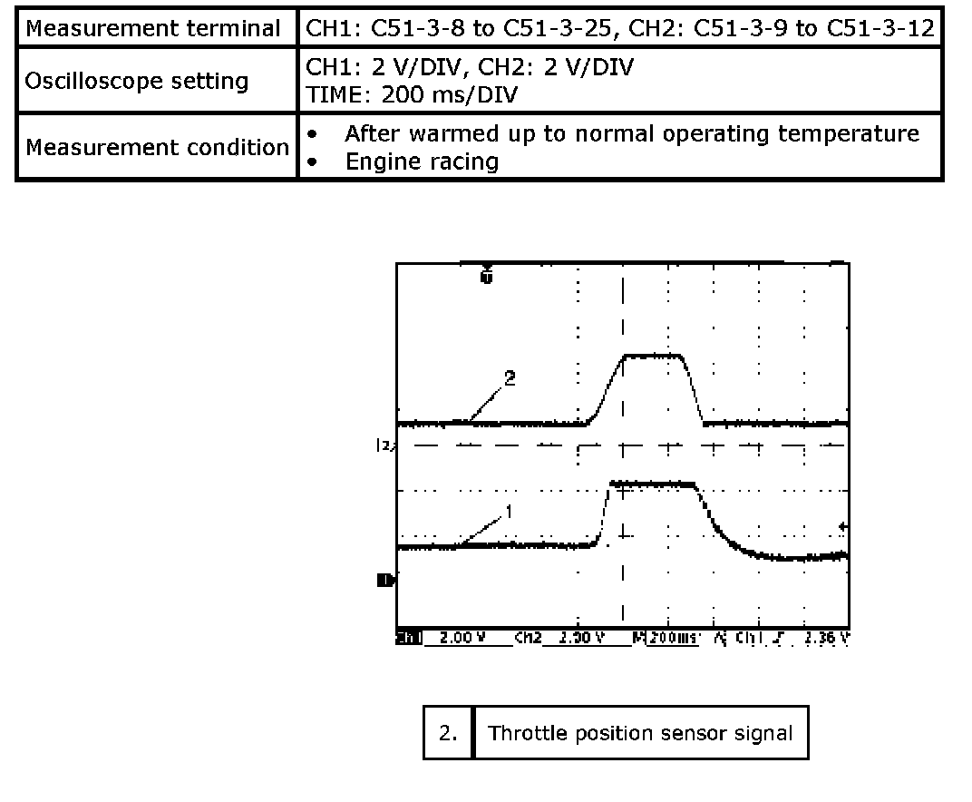 - As each terminal voltage is affected by the battery voltage, confirm that it is 11 V or more when ignition switch is turned ON.