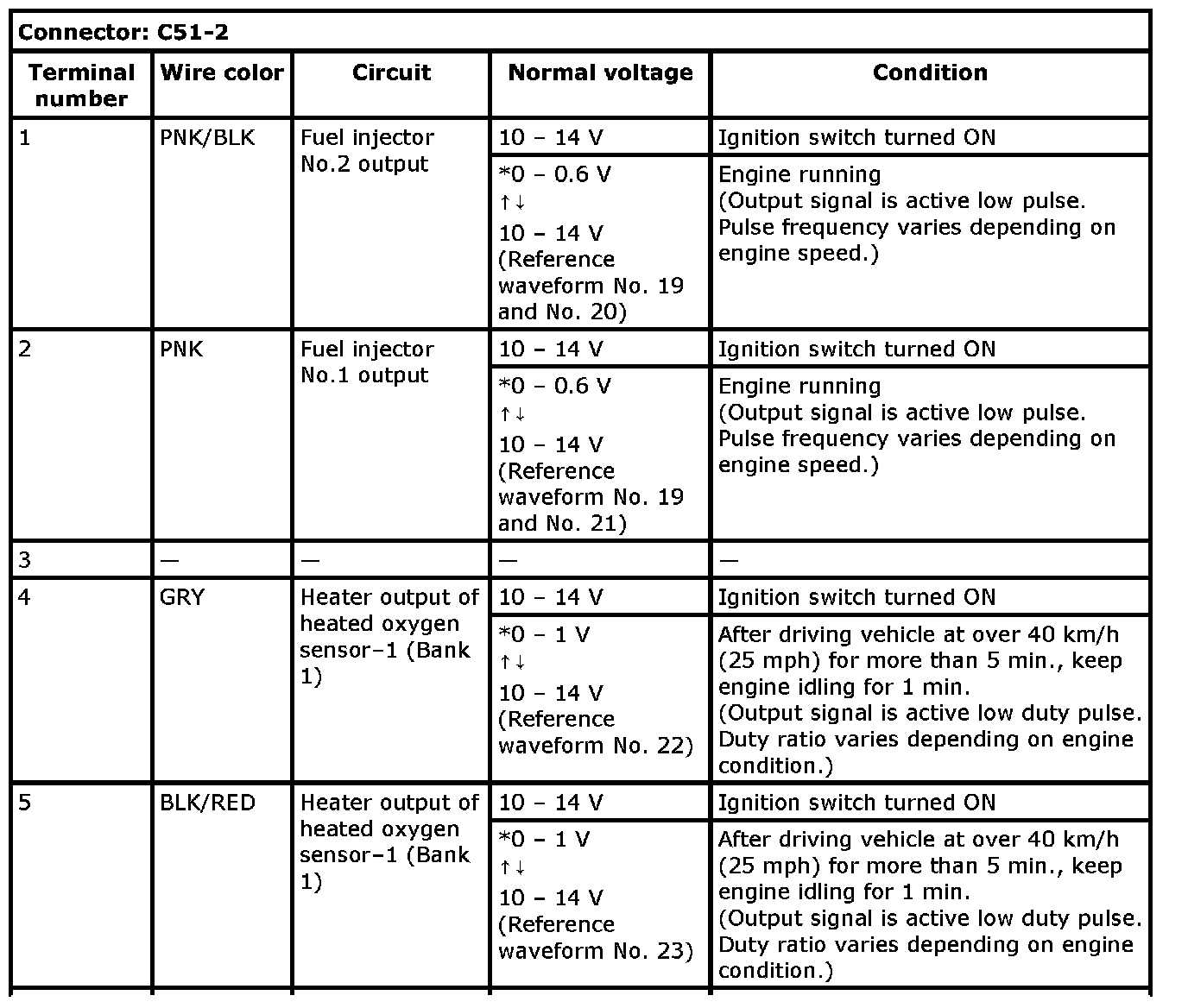- Voltage with asterisk(*) can not be measured by voltmeter because it is pulse signal. Check it with oscilloscope if necessary.