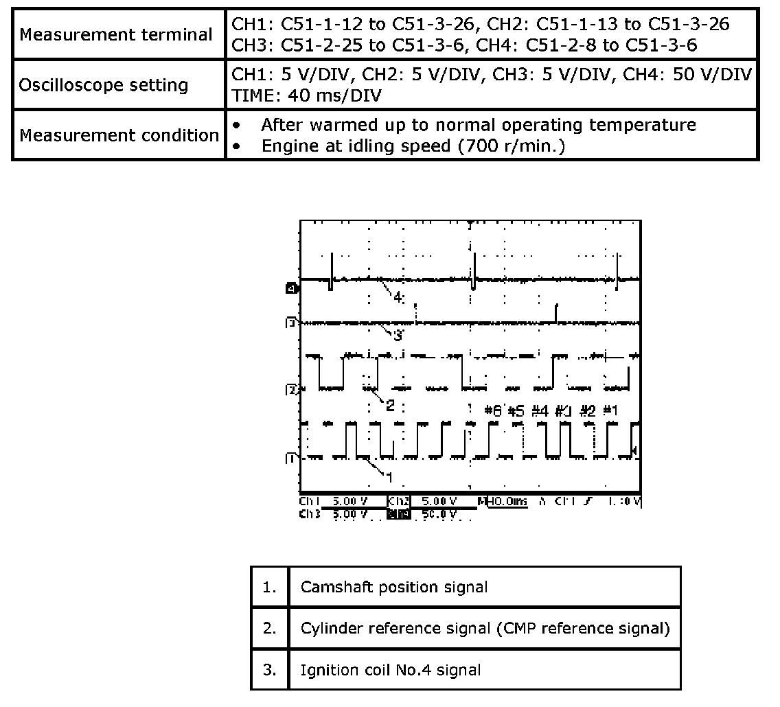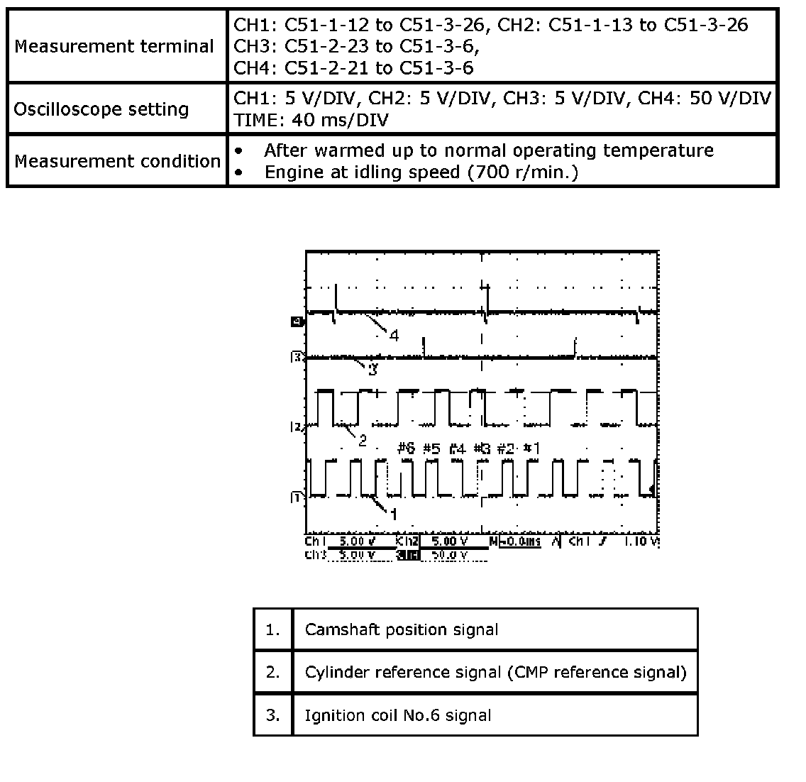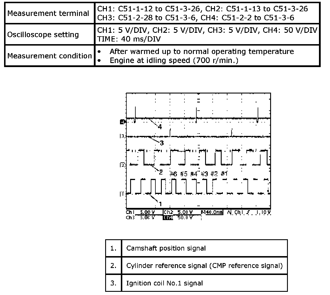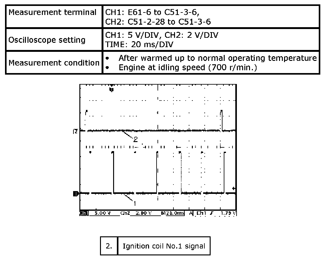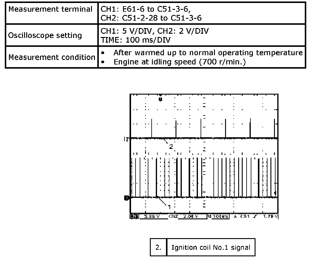Engine revolution (ignition pulse) signal (1) at engine idling