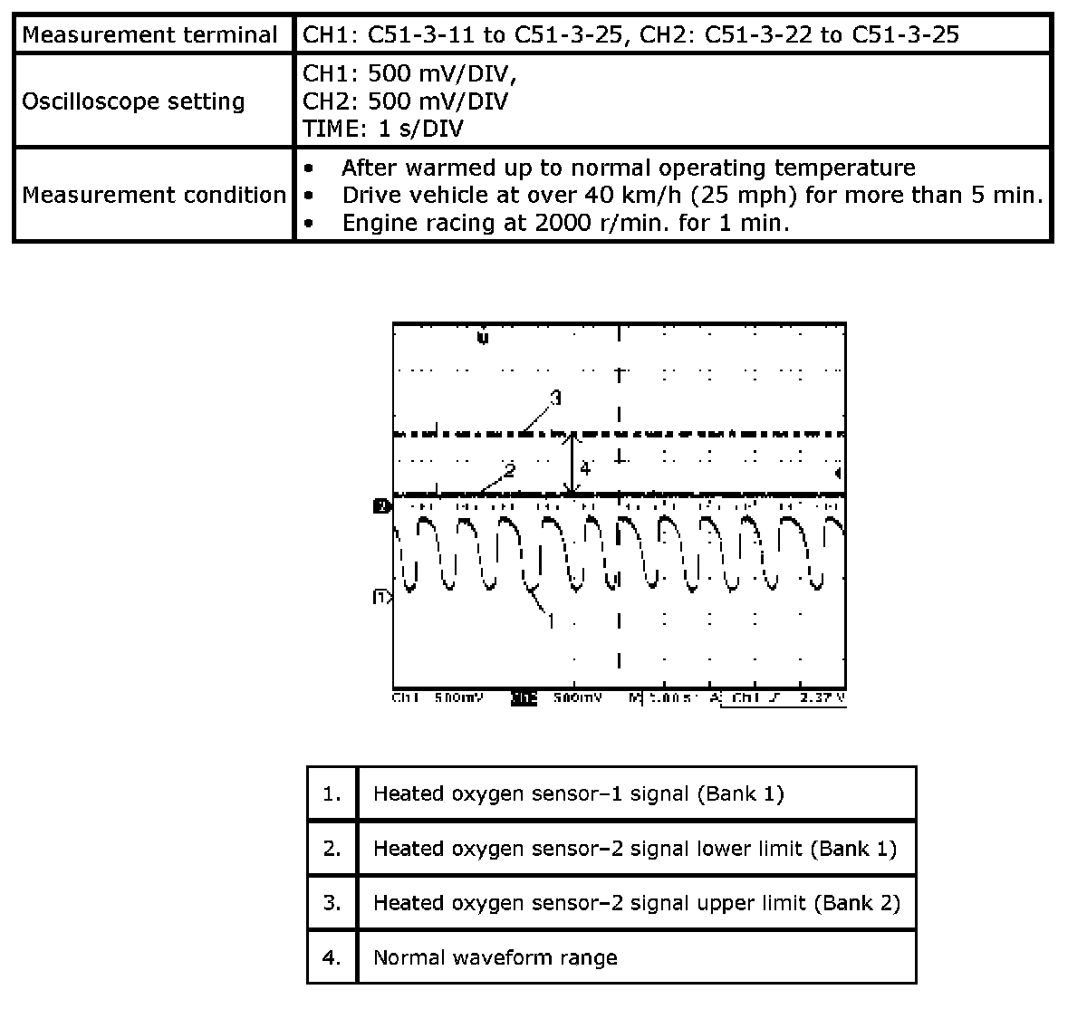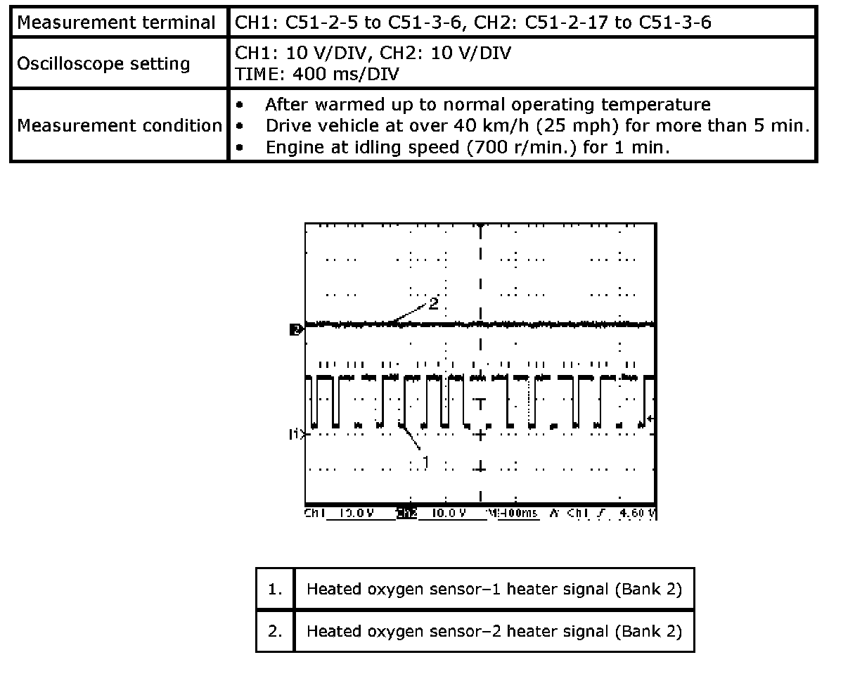 Heated oxygen sensor heater signal (Bank 2) at engine idling