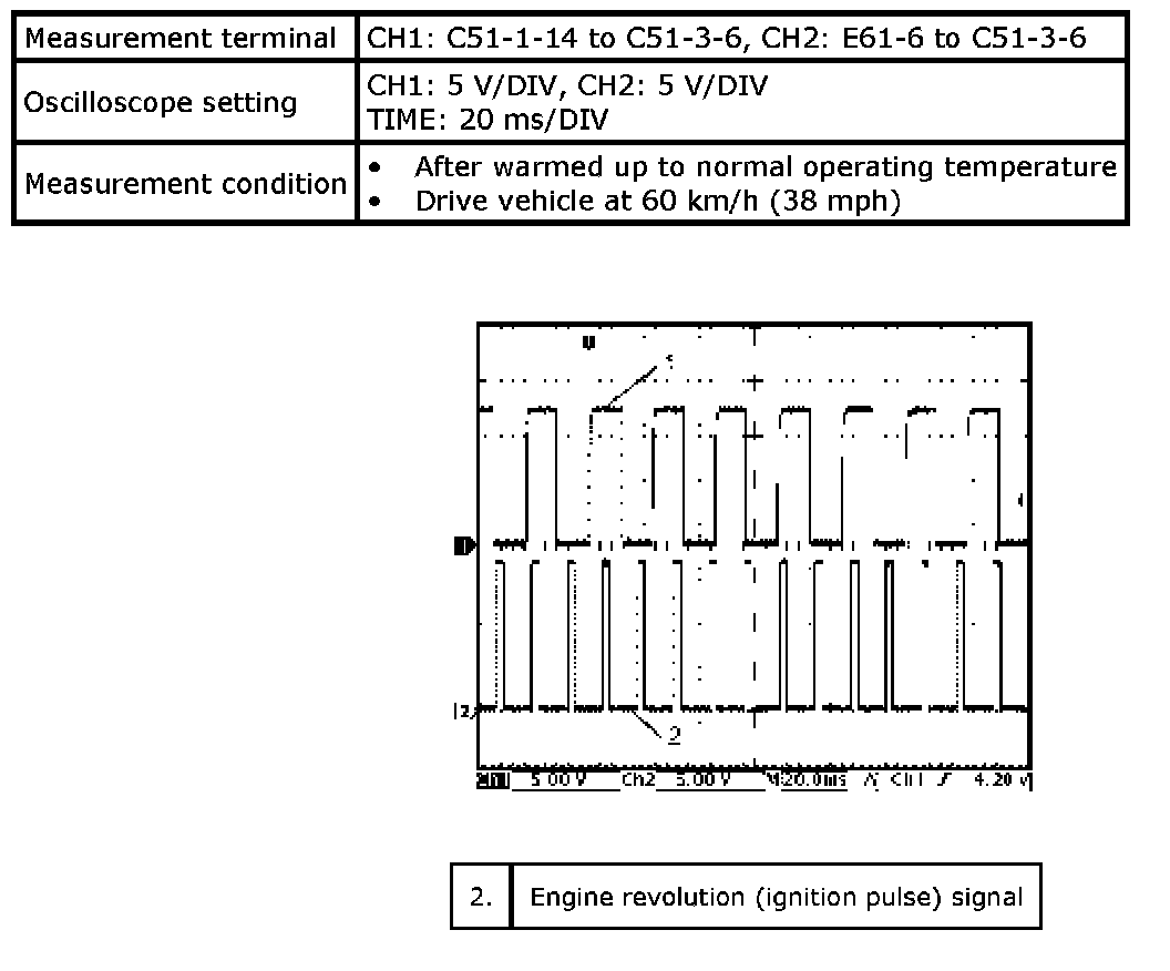 VSS signal (1) at 60 km/h (38 mph) for A/T vehicle