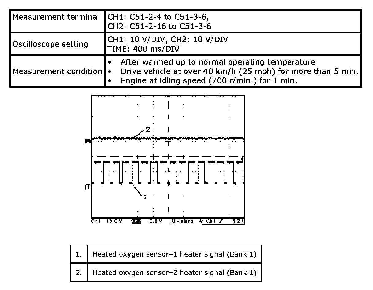Heated oxygen sensor heater signal (Bank 1) at engine idling