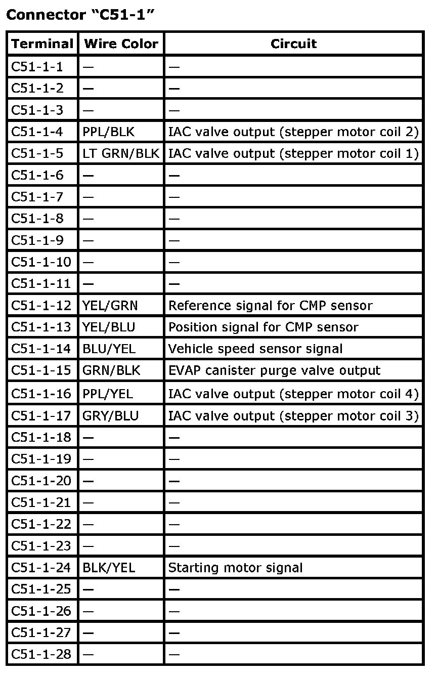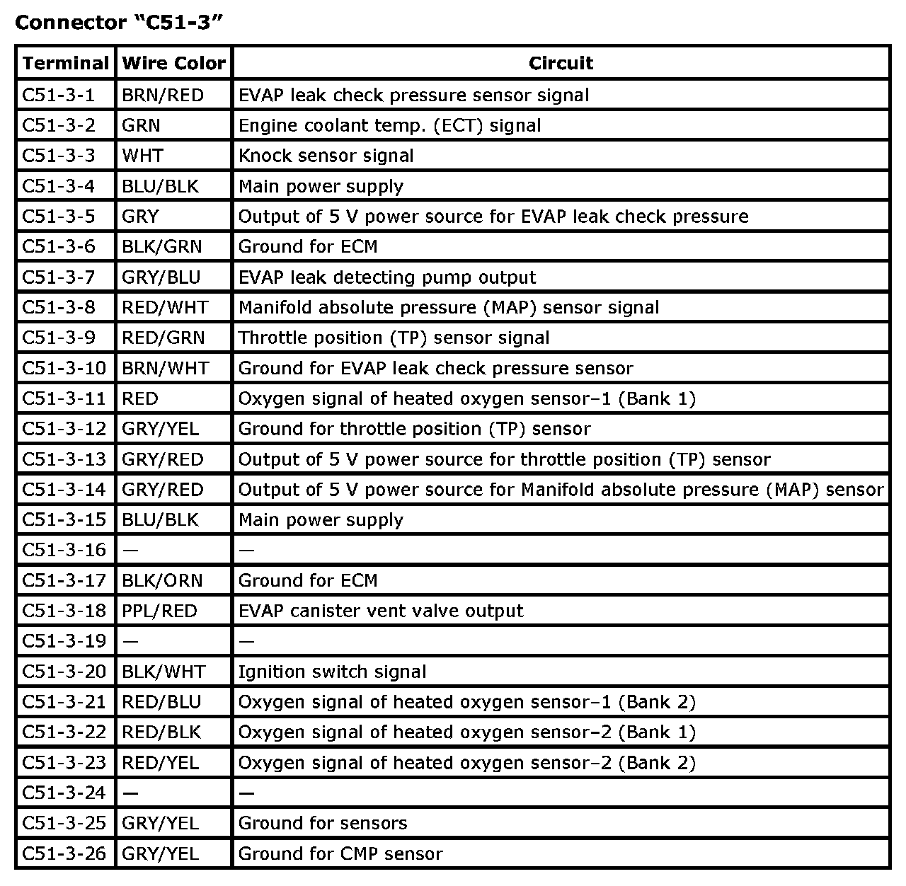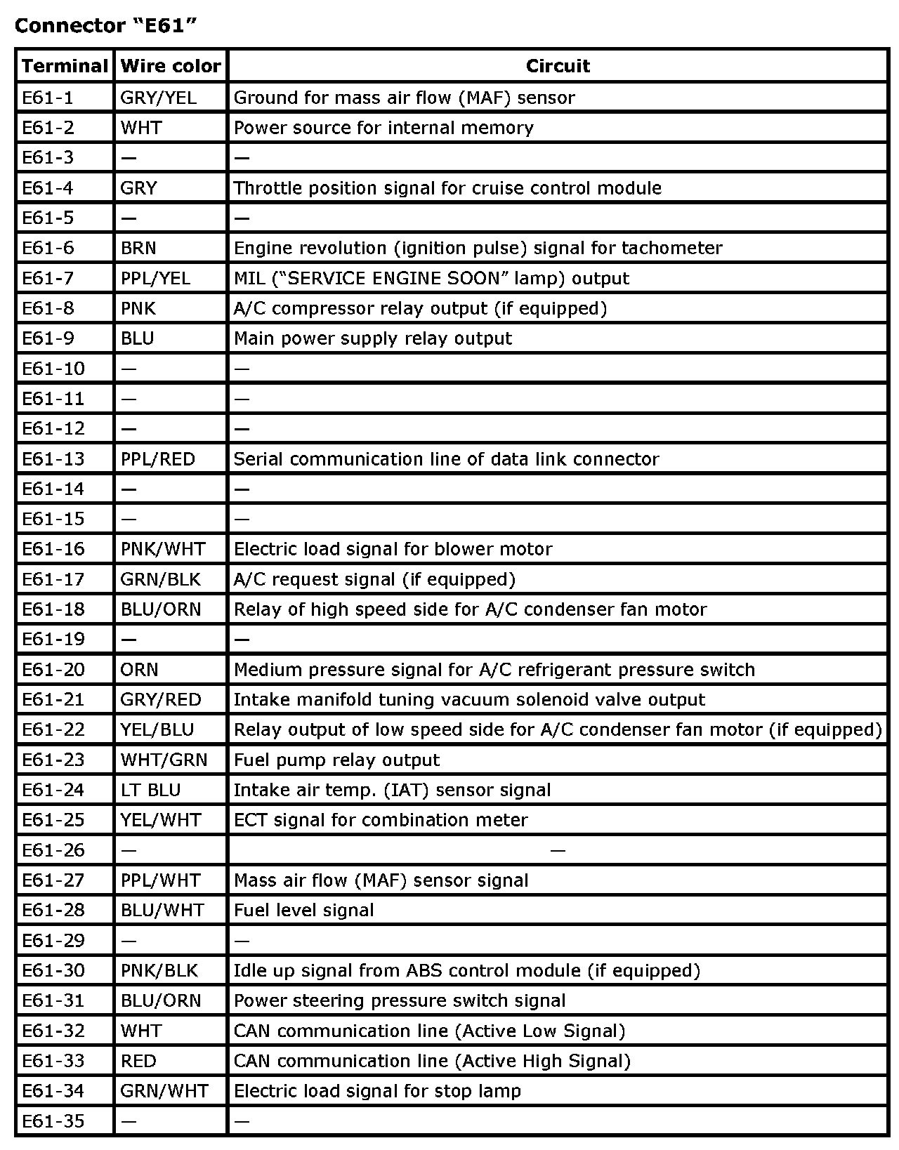 Terminal Arrangement Of ECM Connector (Viewed From Harness Side) Part 1:
