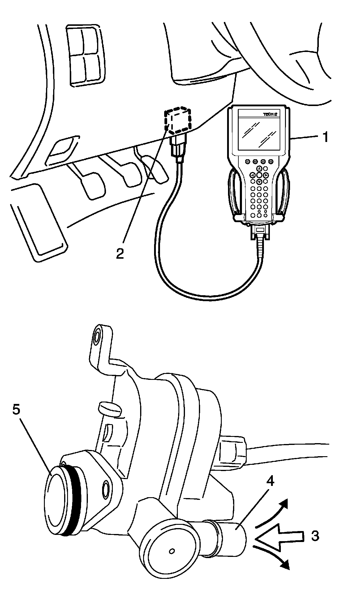CAUTION: When checking EVAP canister vent valve, do not apply compressed air. Compressed air could damage EVAP leak check module and cause fuel vapor leaks.