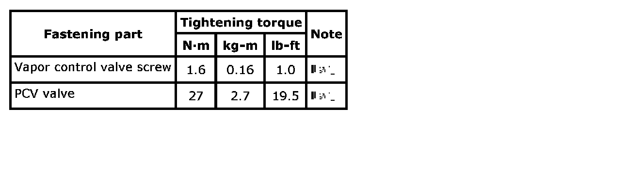 Tightening Torque Specifications: