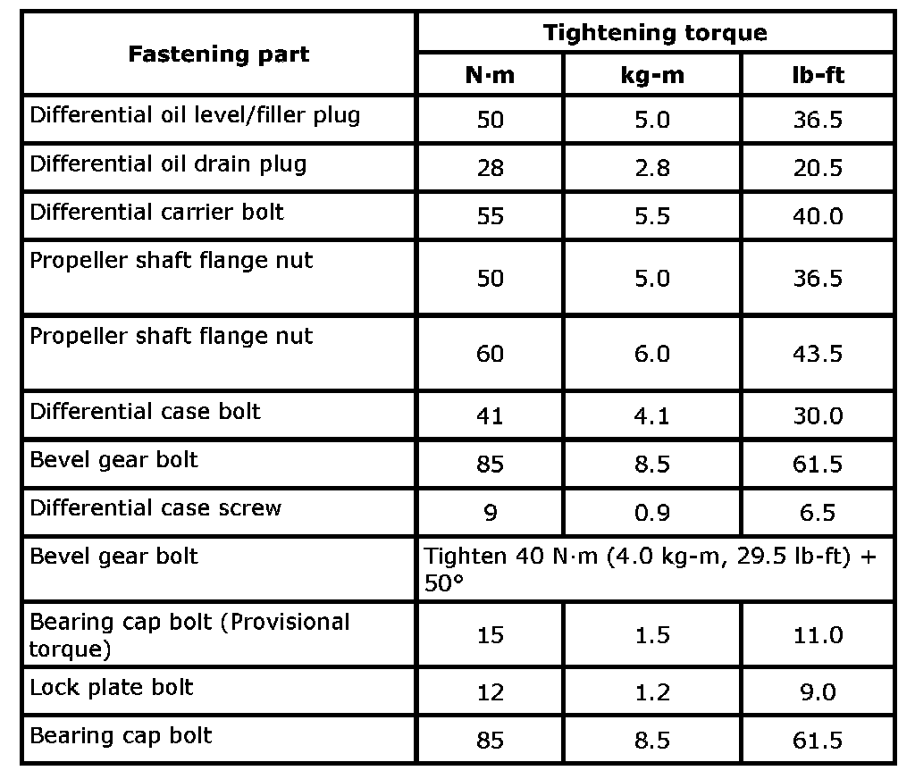Tightening Torque Specifications