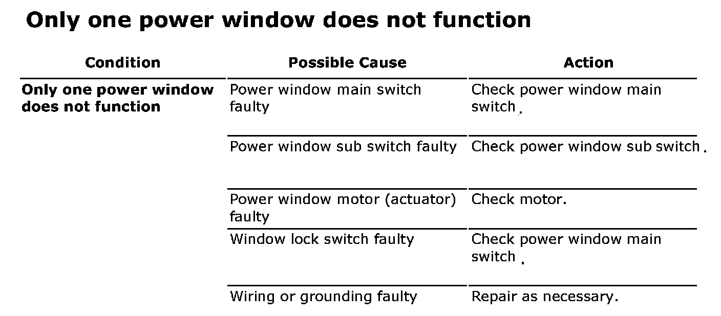 Only One Power Window Does Not Function