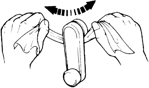 4. Remove window regulator handle (if equipped). To remove regulator handle, pull off snap ring by using a cloth as shown in the figure.
