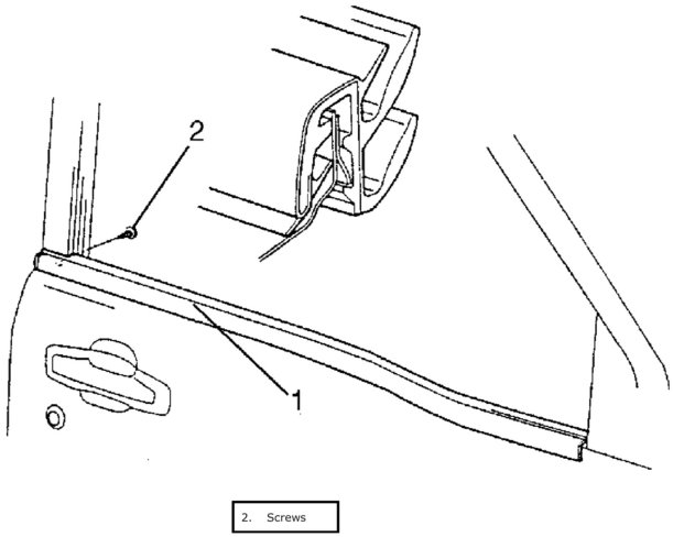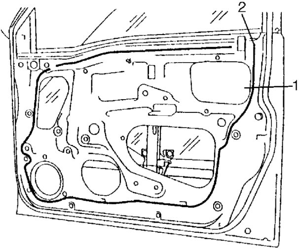 8. Remove door outside weather-strip (1).