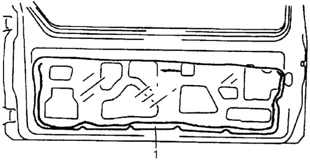 ^ Apply sealing compound to peripheral of door hem area and reinstall door sealing cover (1).