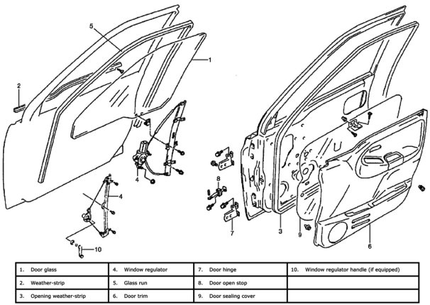 Front Door Window Regulator Removal and InstallationFront Door Glass Components: