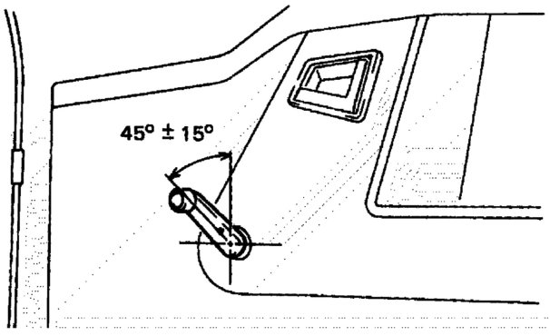 ^ Install door window regulator handle (if equipped) so that it has an angle as shown in the figure when glass is fully closed.