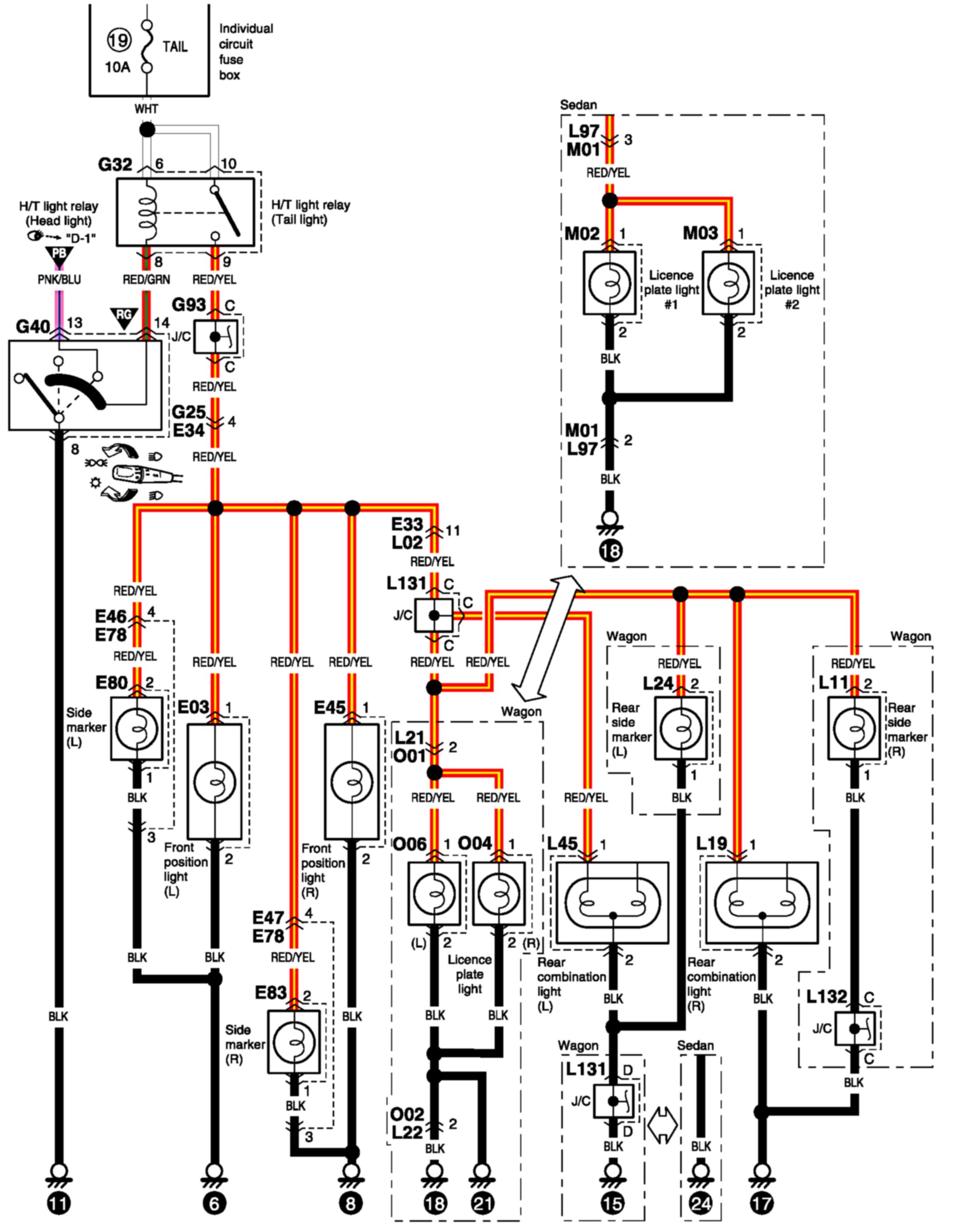 Position, Tail and Licence Plate Light Circuit Diagram: