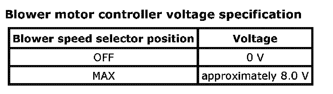 2. With blower motor controller connector connected, turn blower speed selector from OFF to MAX position while measuring voltage between "b" terminal of blower motor controller connector and body ground.