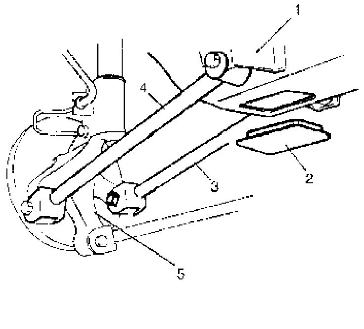 5) Remove control rod No.2 (4) and No.1 (3) from suspension frame (1) and knuckle (5).