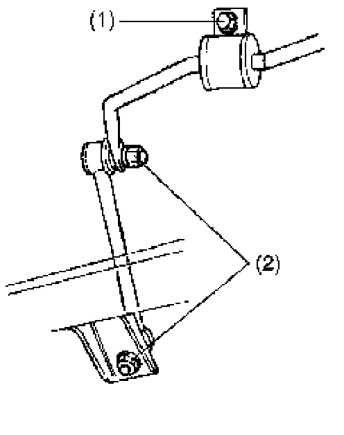 7) Tighten stabilizer bracket bolts (1), link nuts and joint nuts (2) to specified torque.
