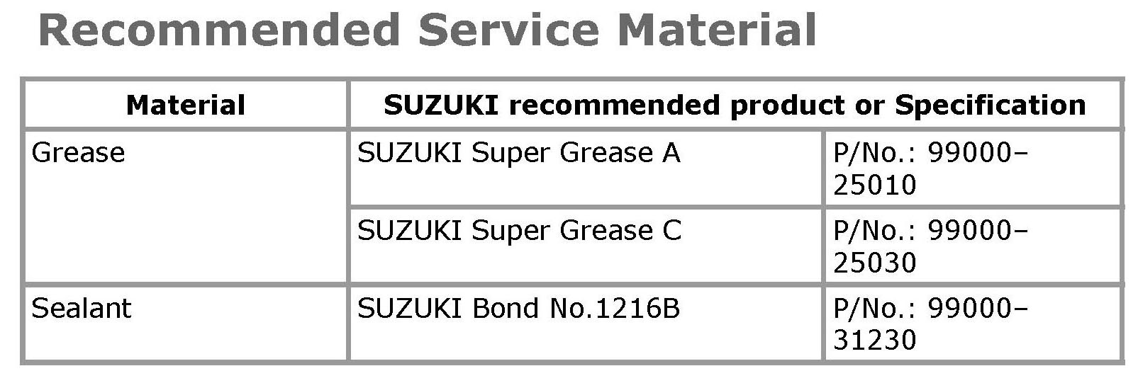 Recommended Service MaterialNOTE: Required service material is also described in the following.