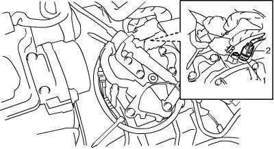 3. Connect input shaft speed sensor connector (2) to input shaft speed sensor (1).