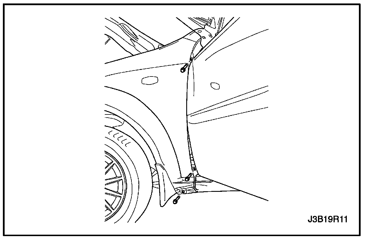 Tighten the front fascia-to-fender bolts to 2.5 Nm (22 in. lbs.).