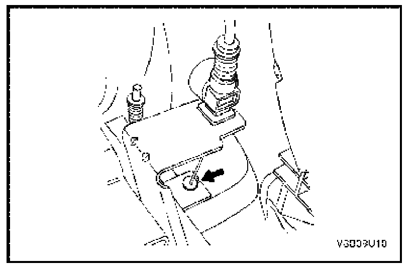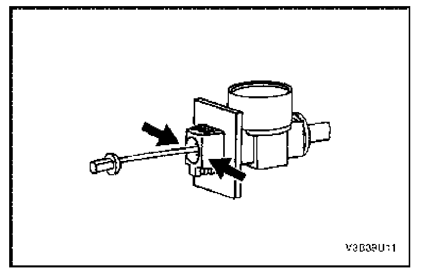 6. Press the retaining tabs of the cable adjuster and remove the adjuster from the mounting bracket.