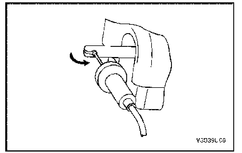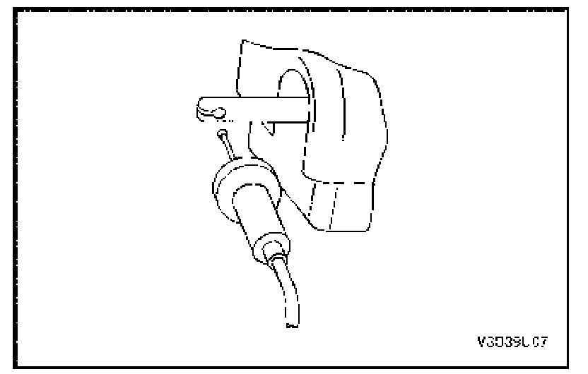 6. Press the cable release button and adjust the cable to achieve a gap of 0.5 mm (0.02 inch) between the bushing and the nipple of the ball.