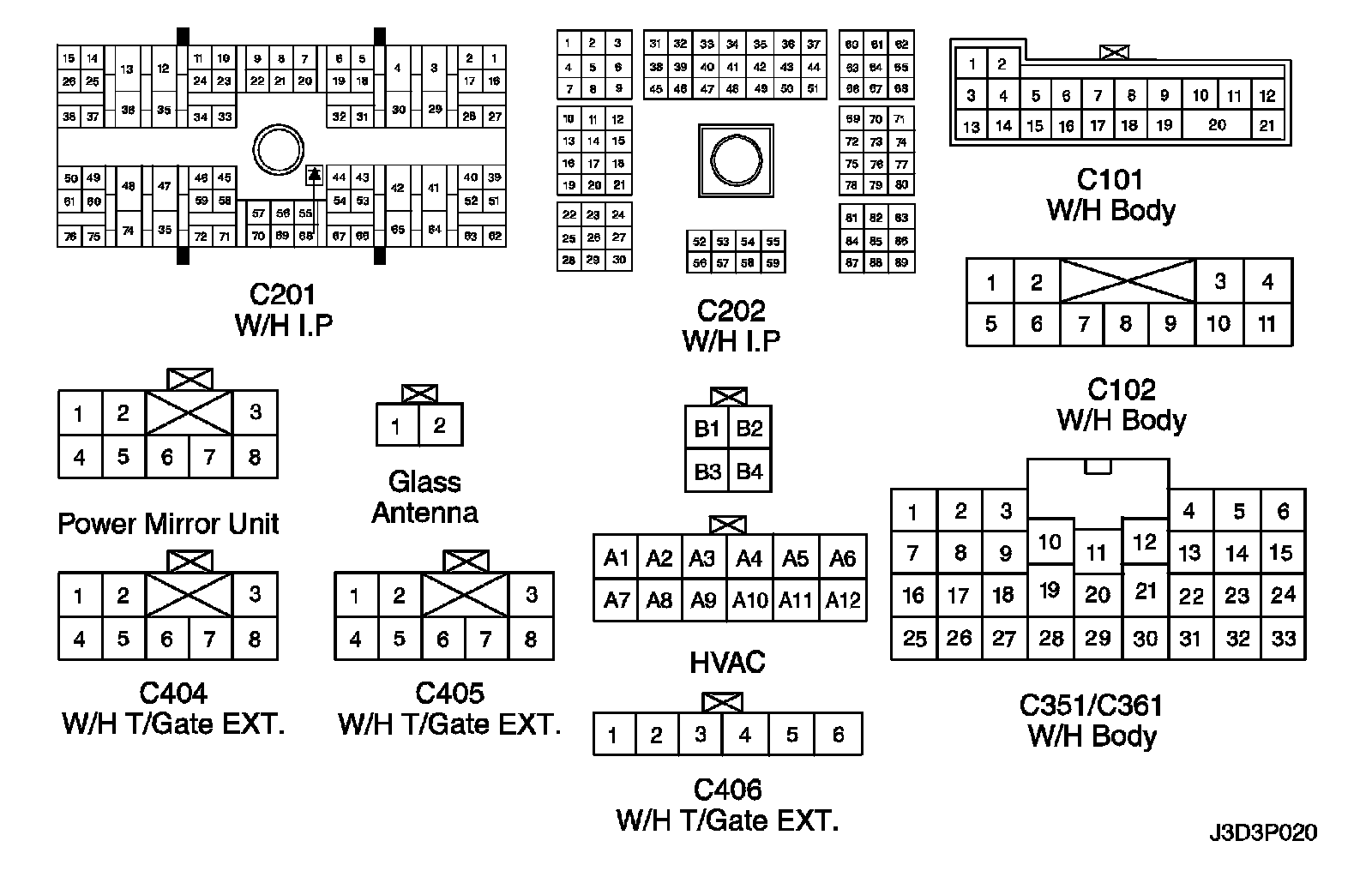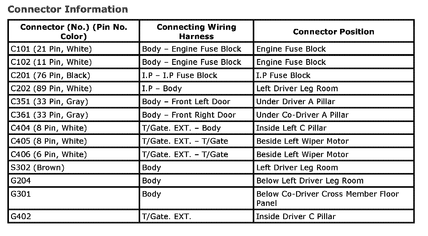 CONNECTOR IDENTIFICATION SYMBOL AND PIN NUMBER POSITION