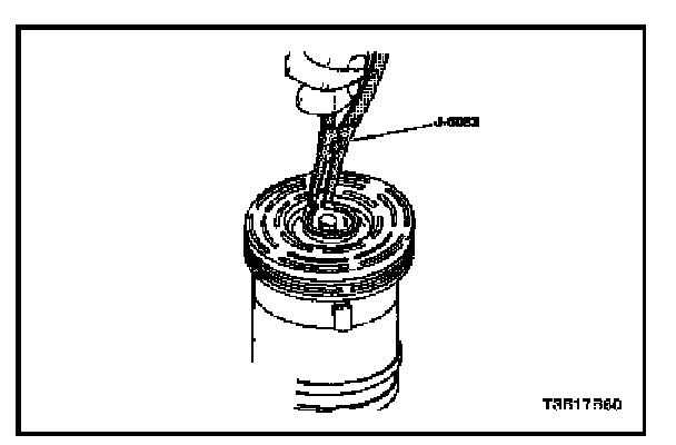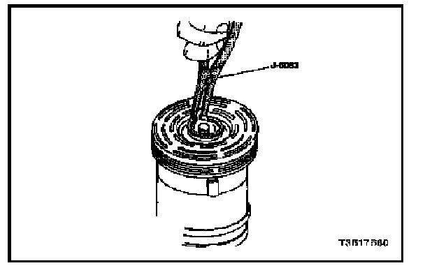 5. Remove the pulley rotor and bearing assembly retaining ring using the snap ring pliers J-6083.