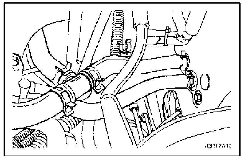 4. Compress the heater hose clamps at the firewall and slide the clamps toward the engine.