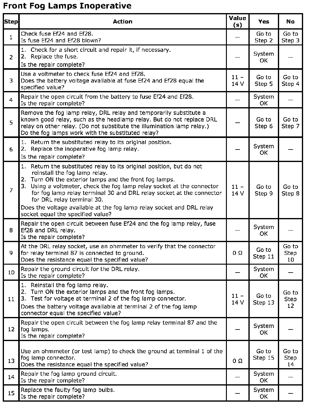 Fog Lamps Circuit DiagnosisDiagnostic Aids