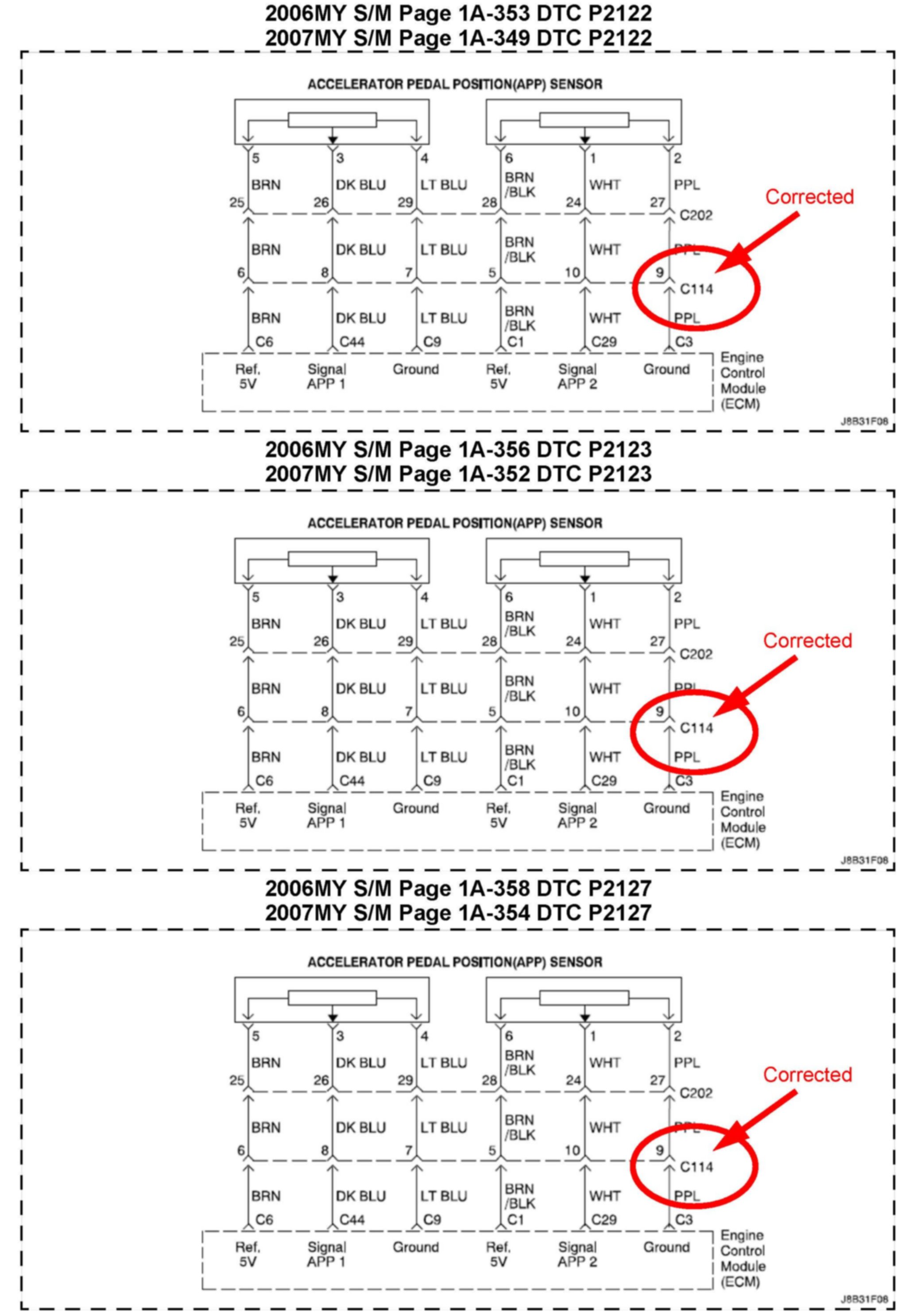 Please refer to below diagrams of this bulletin when diagnosing any of the listed DTCs.